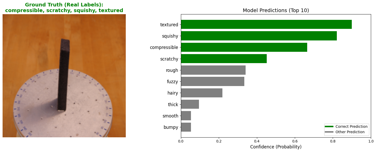 In this project, I explored the Penn Haptic Adjective Corpus 2 (PHAC-2) dataset. My goal was to build a Multimodal Deep Learning model that fuses visual data (images) with tactile sensor data (time-series) to classify physical properties of objects (e.g., “slippery,” “hard,” “fuzzy”).